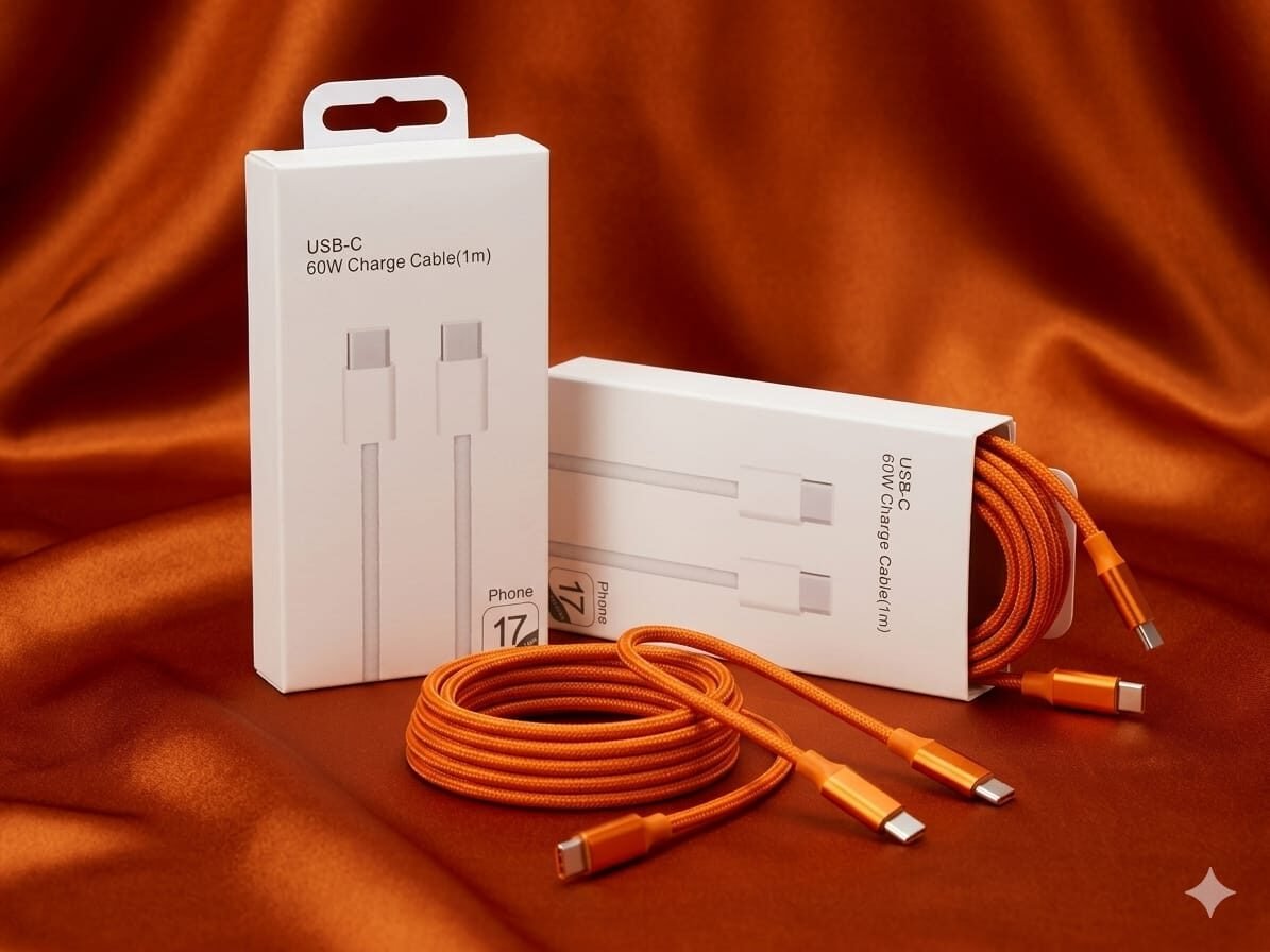 Ap.No Logo Super Fast IPhone Combo Charger 60W=(Type C to Type C)(ORANGE COLOUR)